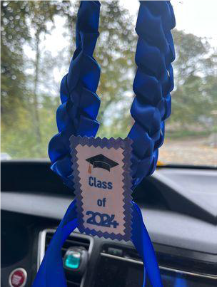 This is a miniature of the standard ribbon lei. These can be hung from a rearview mirror in a car and are a good size for a memory box